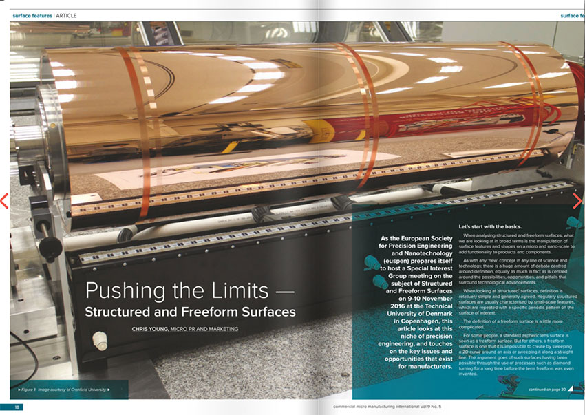 The word “dynamic” could have been invented for the area of micro and nano manufacturing. It seems as if every day there are advances in fabricating technologies and giant strides in the sophistication of metrology and supporting technologies vital when manufacturing parts or features at such small scale. euspen (the European Society for Precision Engineering